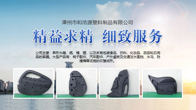 漳州市和浩源塑料制品有限公司是漳州塑料制品行業(yè)的知名企業(yè),本公司擁有專業(yè)的團(tuán)隊(duì),從產(chǎn)品設(shè)計(jì)、模具開發(fā)到生產(chǎn),并具有先進(jìn)的生產(chǎn)設(shè)備,精湛的生產(chǎn)工藝,嚴(yán)格的管理,具備根據(jù)用戶需要進(jìn)行設(shè)計(jì)、制造生產(chǎn)用戶所需產(chǎn)品的能力。 公司主營:異形水箱、瓶、桶、罐、以及所有包裝食品,飲料,化妝品,藥品和日用品的容器。大型產(chǎn)品有:椅子配件、汽車配件、戶外桌板及交通注水圍擋、水馬、防撞桶等設(shè)施的吹塑成形。 “誠實(shí)守信,互惠共贏”,是我們的經(jīng)營理念;“精益求精,細(xì)致服務(wù)”,是我們的工作準(zhǔn)則,“堅(jiān)持行業(yè)標(biāo)準(zhǔn),創(chuàng)造時代精品,追求優(yōu)良的品質(zhì)”,是我們的質(zhì)量標(biāo)準(zhǔn)和目標(biāo);“以人為本,科技創(chuàng)新,簡捷嚴(yán)明,管理規(guī)范”是我們管理機(jī)制的核心內(nèi)容;“生產(chǎn)優(yōu)良產(chǎn)品,提供細(xì)致的服務(wù)”,是我們的承諾。